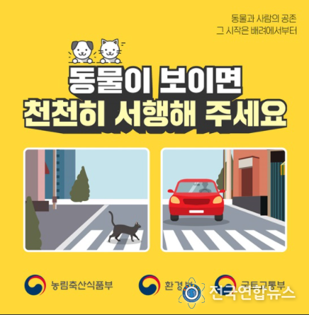 전국연합뉴스 임명락 기자 | 동물이 보이면 천천히 서행해 주세요!