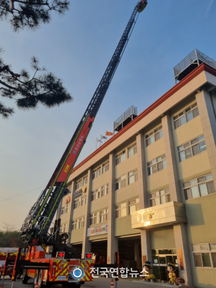 전국연합뉴스 김지민 기자 | 논산소방서는 신규 배치된 53m 고가사다리차에 대한 조작 숙달 교육 훈련을 실시했다고 밝혔다.