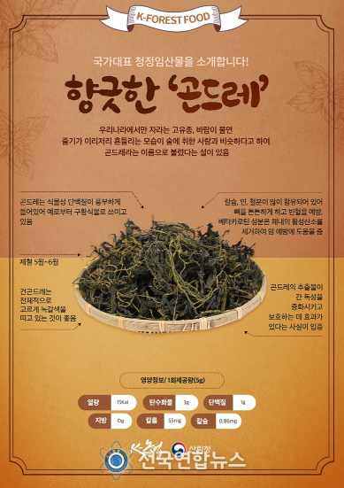 전국연합뉴스 임명락 기자 | 곤드레는 우리나라에서만 자라는 고유종, 바람이 불면 줄기가 이리저리 흔들리는 모습이 술에 취한 사람과 비슷하다고 하여 곤드레라는 이름으로 불렸다는 설이 있다.