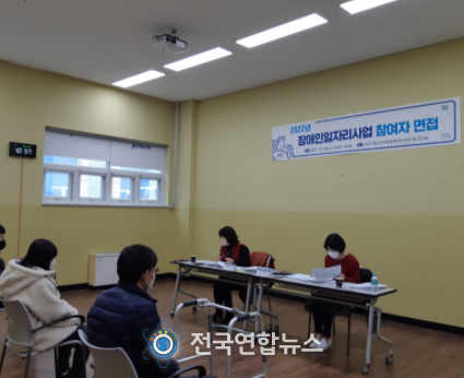 전국연합뉴스 노윤호 기자 | 아산시가 지난 10일 취업 취약계층인 장애인의 사회참여를 확대하고 일반노동시장 진입을 위한 실무능력 습득을 지원하기 위해 추진하는 ‘2022년 장애인일자리사업’의 참여자 면접 및 사업수행기관 선정을 진행했다.