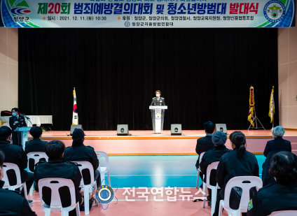 전국연합뉴스 노윤호 기자 | 청양군자율방범연합대가 지난 11일 20회 범죄예방 결의대회를 겸해 청소년 방범대 발대식을 개최했다. 청양문화체육센터에서 열린 행사에는 11개 지대 임원과 청소년 대원 등 100여 명이 참석해 지역의 안녕과 질서를 위한 봉사 정신으로 범죄예방에 힘쓸 것을 다짐했다.