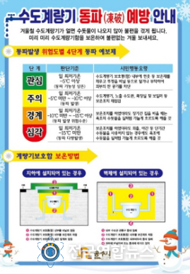 아울러 수도시설 상습 동파지역과 장기간 미사용 수용가 등 취약지역을 중점적으로 관리하고, 계량기 검침 시 수도계량기에 보온 조치 여부를 확인해 안내할 예정이다.