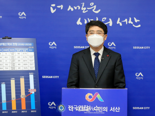 전국연합뉴스 노윤호 기자 | 맹정호 서산시장이 13일 ‘역대 최대 정부예산 확보 언론 브리핑’을 열고 “어려운 시기 역대 최대 정부예산 확보라는 기쁜 소식을 전하게 돼 매우 뜻깊다”고 말문을 열었다.