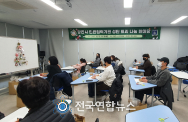 전국연합뉴스 노윤호 기자 | 당진시와 당진시 공익활동지원센터는 13일 지속가능한 발전에 대한 인식 제고와 관심을 촉구하기 위해 새활용(업사이클링·Upcycling) 방식을 통한 성탄트리를 제작하는 민관협력기관 네트워크 파티를 개최했다.