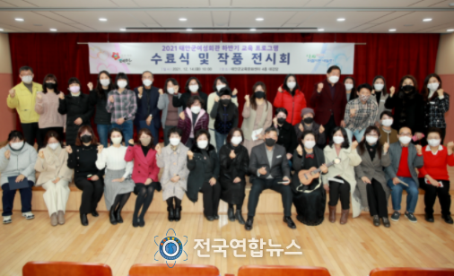 전국연합뉴스 노윤호 기자 | 태안군이 지난 14일 교육문화센터 대강당에서 가세로 군수와 수료생, 강사 등 50여 명이 참석한 가운데 ‘2021 여성회관 하반기 교육프로그램 수료식 및 작품전시회’를 개최했다.