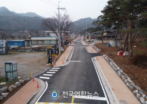 이에 군은 총사업비 21억 3,000만 원을 투입하여 지난 2월부터 사업에 착공해 총연장 450m, 폭 10m의(양쪽 보도 4m 포함) 도로의 확포장 공사를 완료했다.