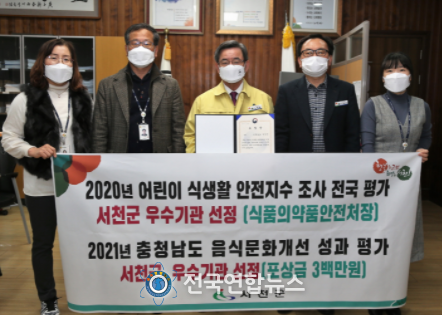 전국연합뉴스 노윤호 기자 | 서천군은 식품의약품안전처가 주관한 2020년도 어린이 식생활 안전지수 조사에서 78.15점을 받아 전국 228개 지자체 중 3위, 농어촌분야 우수기관으로 선정됐다고 밝혔다.