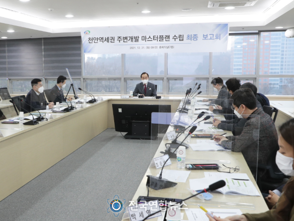 전국연합뉴스 노윤호 기자 | 천안시는 21일 시청 중회의실에서 박상돈 천안시장과 김현수 단국대 교수 등 각계 전문가 등이 참석한 가운데 ‘천안역세권 주변 개발 마스터플랜 수립 최종보고회’를 개최했다고 밝혔다.