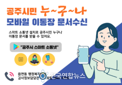 전국연합뉴스 노윤호 기자 | 공주시는 스마트 소통넷을 통해 이통장이 수신하는 문서를 일반시민도 모바일로 수신할 수 있도록 한 서비스를 관내 모든 읍‧면‧동으로 확대한다고 23일 밝혔다.