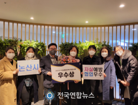 전국연합뉴스 노윤호 기자 | 더불어 살아가는 따뜻한 행복공동체 조성에 힘쓰고 있는 논산시가 충청남도에서 주관한‘2021년 자살예방대책 협업과제’심사 결과, 공동체 중심의 건강ㆍ문화 복지사업을 통한 자살예방 정책 수행에 높은 평가를 받아 우수상을 수상했다.