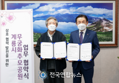 전국연합뉴스 노윤호 기자 | 계룡시는 지난 23일 논산시에 소재한 무궁화추모공원과 상호협력 및 발전을 내용으로 하는 업무협약을 체결했다고 전했다.