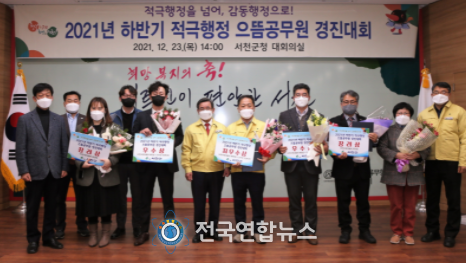 전국연합뉴스 노윤호 기자 | 서천군은 지난 23일 조직 내 적극행정 문화를 확산하기 위해 2021년 하반기 적극행정 으뜸공무원 경진대회를 개최하고 5명의 으뜸공무원을 선발했다.