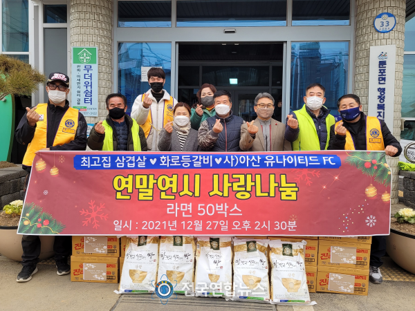 이날 전달된 라면은 둔포면 석곡리 소재 최고집과 화로등갈비, 명미경 씨가, 쌀 5포는 (사)아산유나이티드FC에서 어렵게 겨울을 보내고 있는 이웃을 생각하는 마음을 모아 준비한 것으로 복지 사각지대 대상자에 전달될 예정이다.