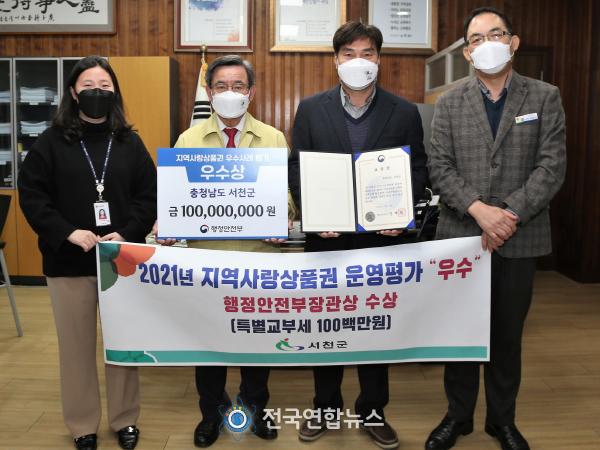 전국연합뉴스 노윤호 기자 | 서천군은 행정안전부가 주관한 ‘2021년 지역사랑상품권 우수사례 평가’에서 행정안전부장관상 수상과 함께 특별교부세 1억원을 인센티브로 확보했다고 전했다.