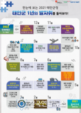 군은 올해 코로나19 등 국내외 어려운 여건 속에서도 군민 여러분의 관심과 협조 속에 태안의 힘찬 도약을 위해 노력한 결과 괄목할만한 성과를 거뒀다며, 내년에도 지역 발전과 군민 행복을 위해 전 공직자가 최선을 다하겠다고 밝혔다.