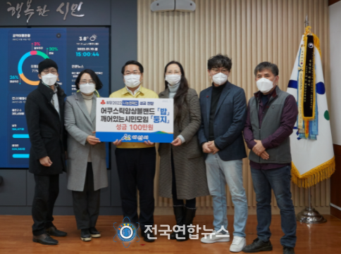 전국연합뉴스 노윤호 기자 | 어쿠스틱 앙상블 밴드 ‘밥’ 깨어있는 시민모임 ‘둥지’가 지난 10일 아산시를 방문해 ‘희망2022나눔캠페인’ 성금 100만원을 기부했다.