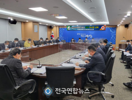 전국연합뉴스 노윤호 기자 | 예산군은 지난 10일 군청 중회의실에서 단체장 및 부서장을 대상으로 중대재해처벌법 대비 관리자 교육을 선제 실시했다.