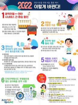 전국연합뉴스 노윤호 기자 | 천안시가 새해를 맞아 알아두면 도움 되는 새로운 주요 제도와 시책을 소개했다.