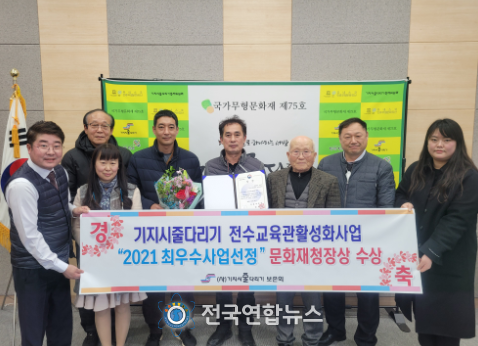 전국연합뉴스 노윤호 기자 | 당진시와 기지시줄다리기보존회가 운영하는 기지시줄다리기전수교육관이 2021년 무형문화재 전수교육관 활성화사업 우수기관으로 선정돼 문화재청장을 수상했다고 13일 밝혔다.