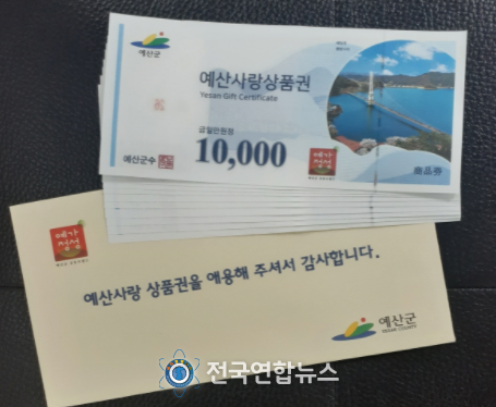 전국연합뉴스 노윤호 기자 | 예산군은 지역자금 역외 유출을 막고 소비 촉진을 통한 지역경제 활성화를 위해 예산사랑상품권 설맞이 10% 특별 할인행사를 오는 20일부터 실시한다.