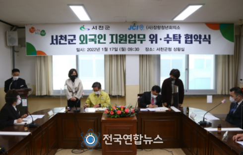 전국연합뉴스 노윤호 기자 | 서천군이 지난 17일 외국인지원업무 운영을 위한 민간위탁 협약을 장항청년회의소(회장 백명구)와 체결했다고 전했다.