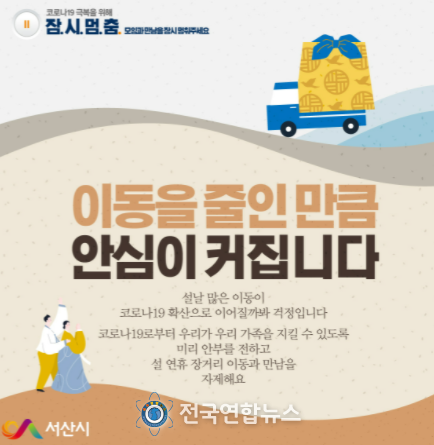전국연합뉴스 노윤호 기자 | 충남 서산시가 설 연휴를 앞두고 코로나19 방역강화를 위한 대시민 ‘잠시멈춤’ 캠페인을 2월 6일까지 2주간 전개한다.