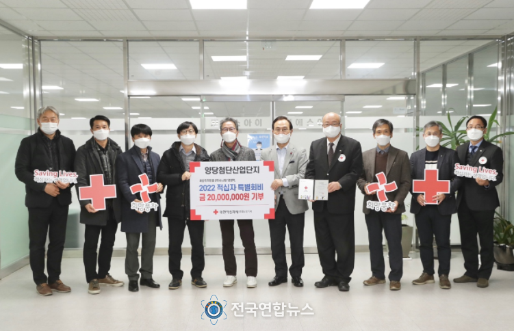 전국연합뉴스 노윤호 기자 | 천안시는 지난 19일 반도체장비 및 디스플레이 설비 산업을 전문으로 하는 직산읍 양당첨단산업단지 입주 기업들이 취약계층을 위해 사용해달라며 대한적십자사 충남지사에 적십자 특별회비 2,000만 원을 납부했다고 밝혔다.