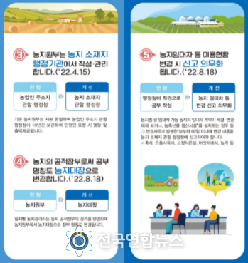 한편 오는 4월 15일부터 농지관할 행정청도 기존 농업인 주소지에서 농지소재지로 변경되어 관리기관이 일원화될 예정이며, 관리책임이 명확해지고 정비 효율성 또한 높아질 전망이라고 전했다.