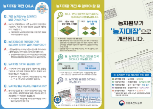 손종천 농업정책과장은 “이번 개편으로 효율적 농지관리가 가능할 것으로 기대한다”며 “새로운 농지대장이 정착될 수 있도록 안내에 최선을 다하겠다”고 말했다.
