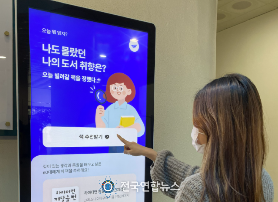 전국연합뉴스 노윤호 기자 | 천안시 쌍용도서관은 충남 최초로 빅데이터기반 인공지능(AI) 도서 추천 키오스크 ‘플라이북 스크린’을 도입했다고 밝혔다.