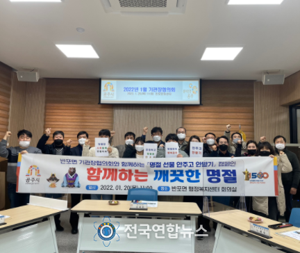 전국연합뉴스 노윤호 기자 | 공주시 반포면은 지난 20일 반포면 행정복지센터 회의실에서 설 명절을 앞두고 시민들에게 신뢰받는 공정하고 깨끗한 분위기 조성을 위해 청렴캠페인을 실시했다.