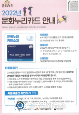전국연합뉴스 노윤호 기자 | 부여군이 2월 3일부터 각 읍·면 행정복지센터에서‘문화누리카드’ 신청·접수를 개시한다.