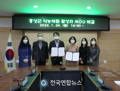 전국연합뉴스 노윤호 기자 | 홍성군 농업기술센터는 지난 24일 올바른 식생활 문화 정착을 위해 홍성군어린이급식관리지원센터와 식농체험 활성화 업무 협약을 체결하였다.