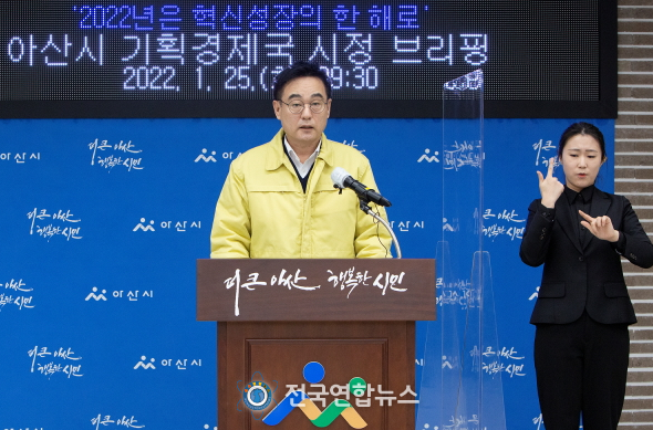 전국연합뉴스 노윤호 기자 | 아산시 오채환 기획경제국장이 25일 비대면 시정브리핑을 통해 2022년은 4차산업시대의 미래선도형 산업들을 선점하는 혁신성장의 초석을 다져나가는 해가 될 것이라면서 ‘2022년도 아산시 미래산업육성의 계획과 비전’을 밝혔다.