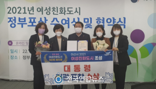 아산시는 25일 서울정부청사에서 열린 여성친화도시 정부포상 시상식에서 전국에서 유일하게 최고상인 대통령상을 수상했다.