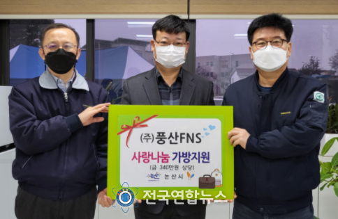 논산시는 25일 주식회사 풍산FNS에서 방문, 드림스타트 아동을 위해 340만원 상당의 가방 30개를 기탁했다고 전했다.