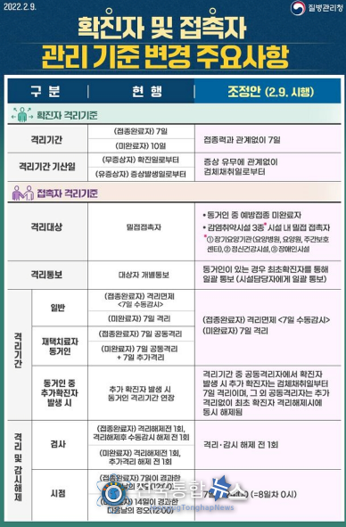 - 현행: (접종완료자) 7일, (미완료자) 10일
