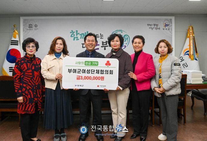 전국통합뉴스 이인복 기자 | 부여군 여성단체 협의회는 설 명절을 맞아 관내 여성과 청소년 가구에 전달해 달라며 이웃돕기 성금 3백만 원을 기부했다.