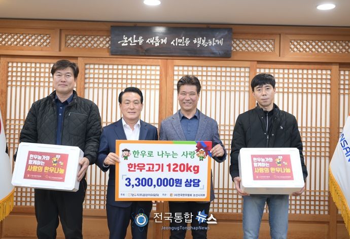 전국통합뉴스 이인복 기자 | 논산시는 (사)전국한우협회 논산시지부가 설날을 맞아 7일 논산시에 한우불고기 120kg(330만 원 상당)을 기탁했다고 밝혔다.