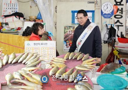 전국통합뉴스 이인복 기자 | 이완섭 서산시장이 8일 우리 민족 고유 최대 명절인 설을 앞두고 동부전통시장을 방문했다.