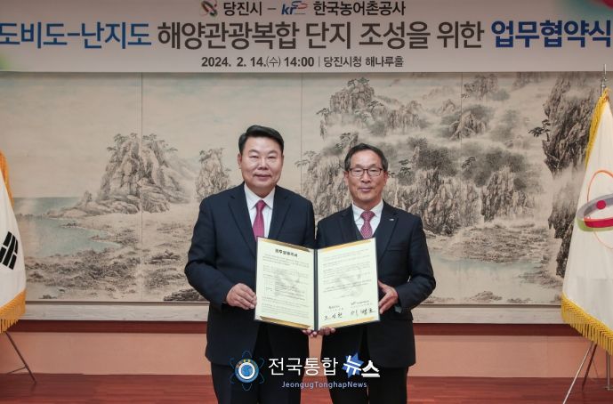 전국통합뉴스 이인복 기자 | 당진시는 14일 시청 해나루 홀에서 한국농어촌공사와 ‘도비도·난지도 해양관광복합단지 조성을 위한 업무협약’을 체결했다.