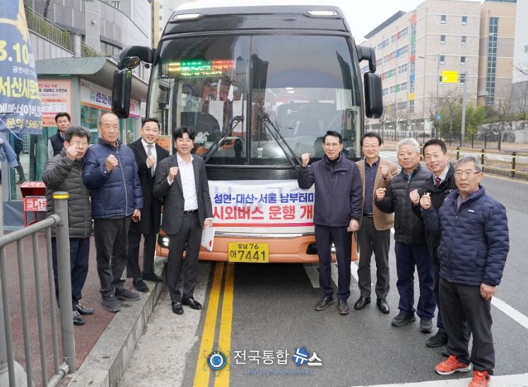 한편 성연~대산~서울남부터미널행 시외버스는 성연 힐스테이트아파트 402동 앞 버스승강장에서 출발해 대산터미널을 경유하고 당진 송악 이주단지를 거쳐 서울 남부터미널까지 운행한다.