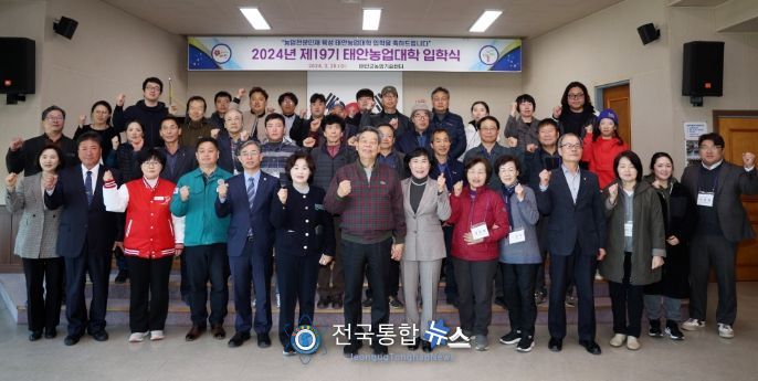 전국통합뉴스 이인복 기자 | 태안군이 지난 20일 군 농업기술센터 대강당에서 가세로 군수 및 군의원을 비롯해 교육생과 군민 등 40여 명이 참석한 가운데 ‘2024년 제19기 태안농업대학 입학식’을 개최했다.