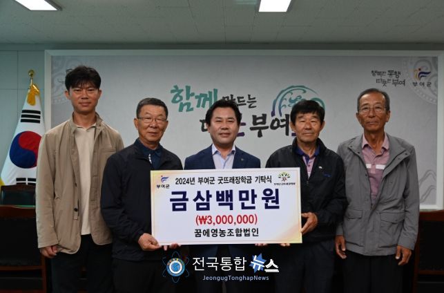 전국통합뉴스 이인복 기자 | 꿈에영농조합법인은 지난 1일 부여군청을 방문하여 인재 육성을 위한 장학금 300만원을 부여군굿뜨래장학회(이사장 박정현)에 기탁했다.