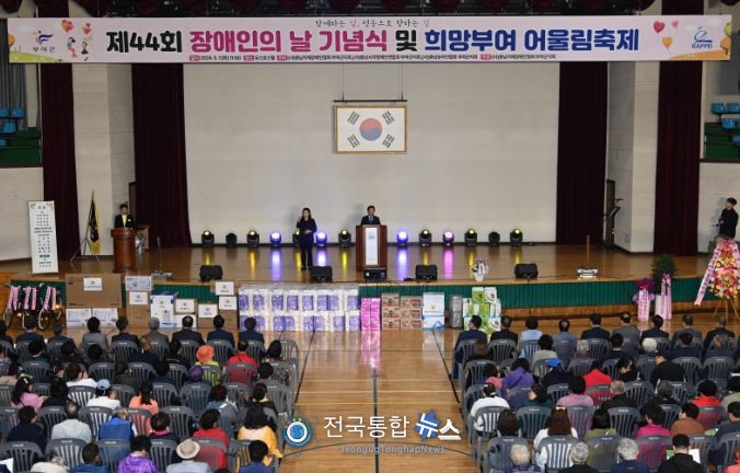 전국통합뉴스 이인복 기자 | 부여군은 지난 7일 부여군 유스호스텔에서 장애인의 날을 기념해 장애인과 비장애인이 하나되는 제44회 장애인의 날 기념식 및 희망 부여 어울림축제를 개최했다.