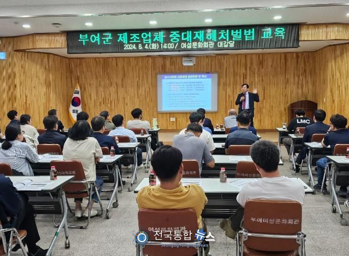 전국통합뉴스 이인복 기자 | 부여군은 지난 4일 여성문화회관에서 관내 중소기업 사업주 및 안전관리자 50명을 대상으로 중대재해처벌법 교육을 실시했다.