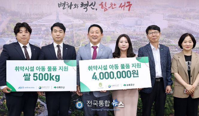 기탁식에는 서철모 서구청장, 김난영 모로미찬 본점 대표, 김대연 대전둔산청년회의소 회장, 초록우산 대전지역본부(본부장 한전복) 관계자 등이 참석해 따뜻한 기부의 뜻을 나눴다.