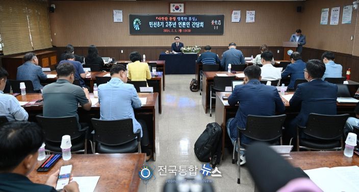 전국통합뉴스 이인복 기자 | 이용록 홍성군수가 민선8기 출범 2주년을 맞아 1일 군청 회의실에서 열린 언론인 간담회를 통해 “한 걸음, 한 걸음 목표를 달성해 가는 우공이산(愚公移山)의 정신으로 자신 있고 끈기 있게 군정을 이끌어 가겠다.”는 포부를 밝혔다.