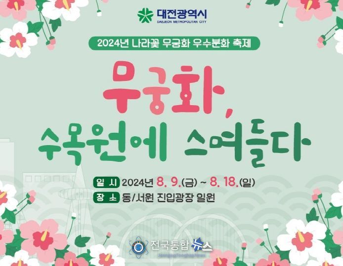 전국통합뉴스 이종구 기자 | 대전시는 제79주년 광복절을 기념하기 위한 ‘2024년 나라꽃 무궁화 우수분화 축제’를 9일부터 18일까지 한밭수목원 동·서원 진입광장 일원에서 개최한다.