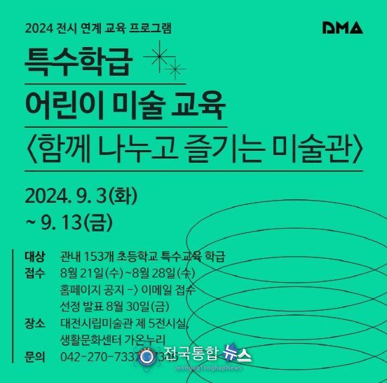전국통합뉴스 이종구 기자 | 대전시립미술관은 2024 전시 연계 교육 프로그램의 하나로 3일부터 13일까지 특수교육 학급 학생들을 위한 미술 교육 프로그램 ‘함께 나누고 즐기는 미술관’을 운영한다.